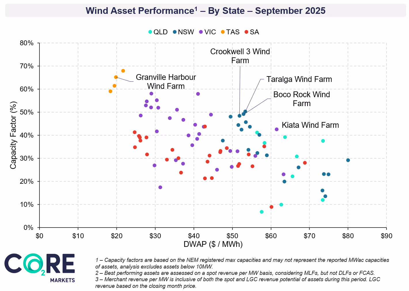These shifting conditions emphasise potential opportunities and risks for spot-market exposed entities. Asset owners are likely to rely on alternate revenue streams such as PPAs, financial swaps, firm blocks, virtual and physical tolls amongst other offtake mechanisms. These contract mechanisms and in-depth market insights are outlined in CORE Markets’ offtake market report.