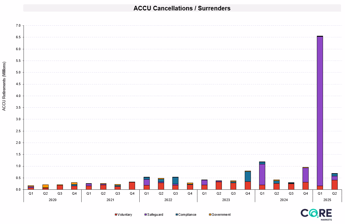 Q2 2025 brought the ACCU market into sharper focus with new activity – including higher issuances, a surge in voluntary retirements and continued Safeguard holdings - influencing a forecast that now shows demand peaking sooner than expected and a wider range of price outcomes.